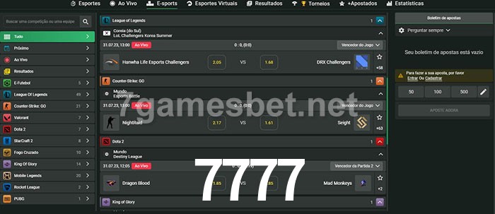 A aposta 7777 oferece aos jogadores a experiência mais conveniente de apostas em eSports!